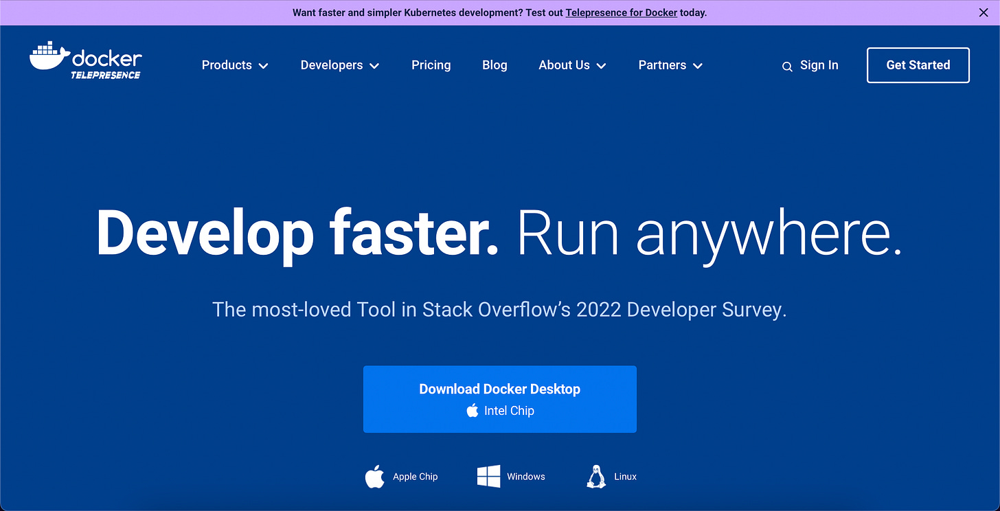 Docker addresses a pain point familiar to many developers: the challenge of setting up and managing development environments. By making a clear promise to solve this issue, Docker presents itself as a compelling solution. Its emphasis on community also provides reassurance of ongoing support and development, which is critical to developers when choosing a tool.